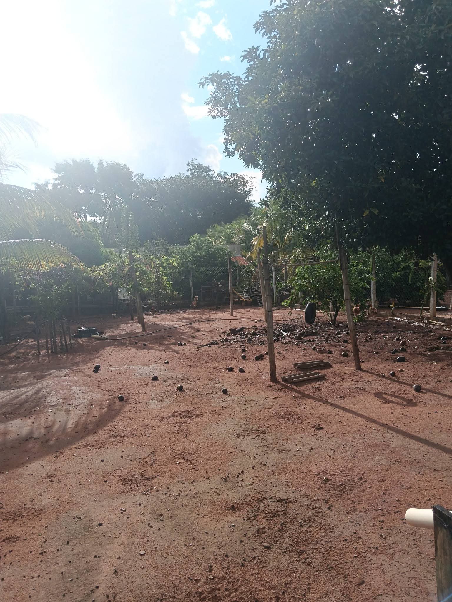uma cozinha todo fechado de alambrado, pomar etc, etc